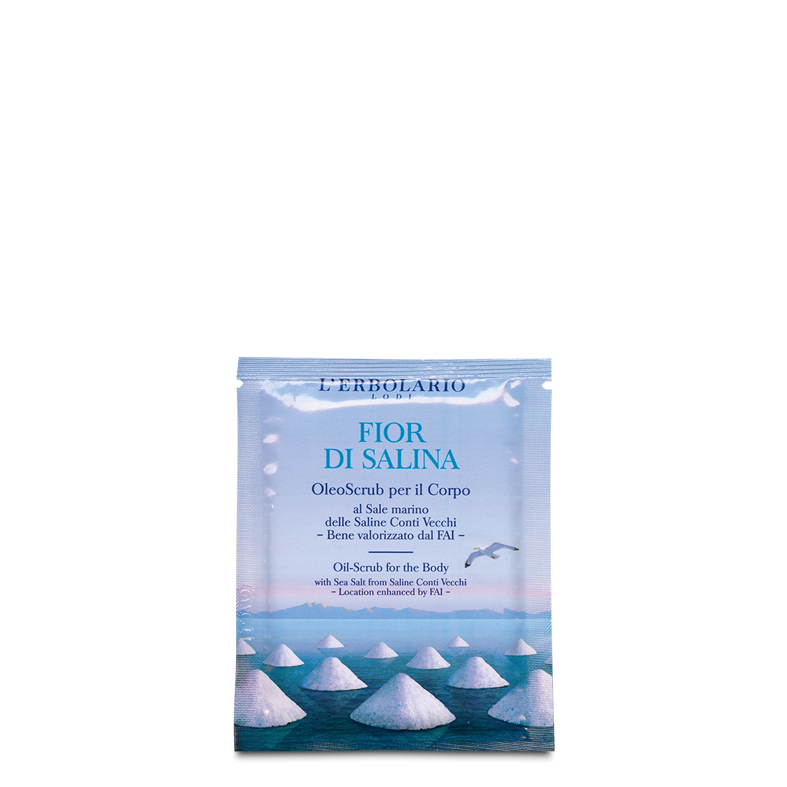 Un campione di OleoScrub Fior di Salina all'interno di ogni confezione.